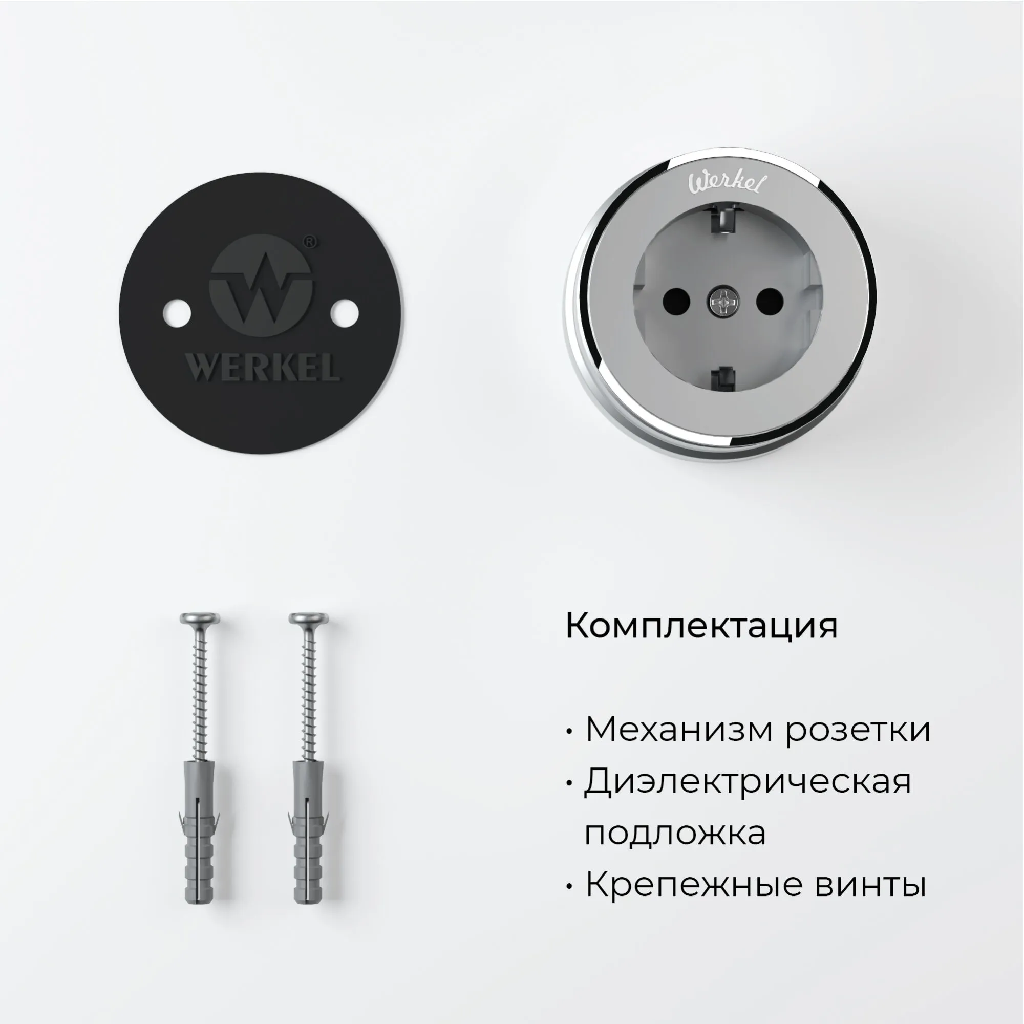 Розетка с заземлением (серебро матовый/хром) W5871050 Werkel – стиль и безопасность в вашем интерьере